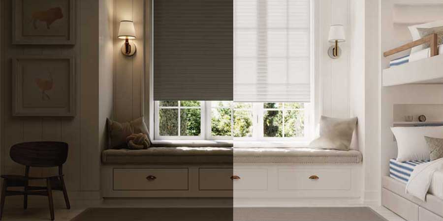 Sonnette® Cellular Roller Shades: Room Darkening Comparison with Light Filtering